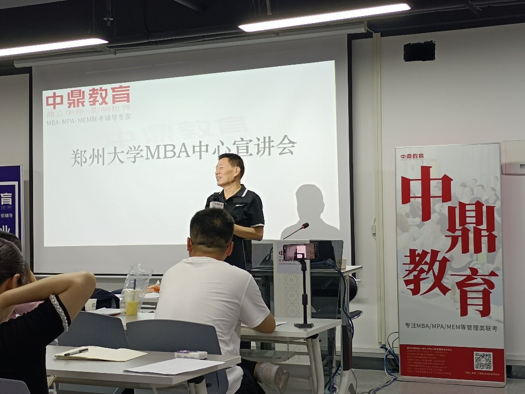 为了使学员们对郑州大学MBA有更全面的了解,6月12日,中鼎培训学校特邀郑州大学MBA中心主任郭主任和陆老师亲临中鼎课堂,现场为各位同学讲解郑州大学MBA项目的优势和特点,包括刚刚录取结束的2022年的具体录取比例,着重介绍了郑大MBA的师