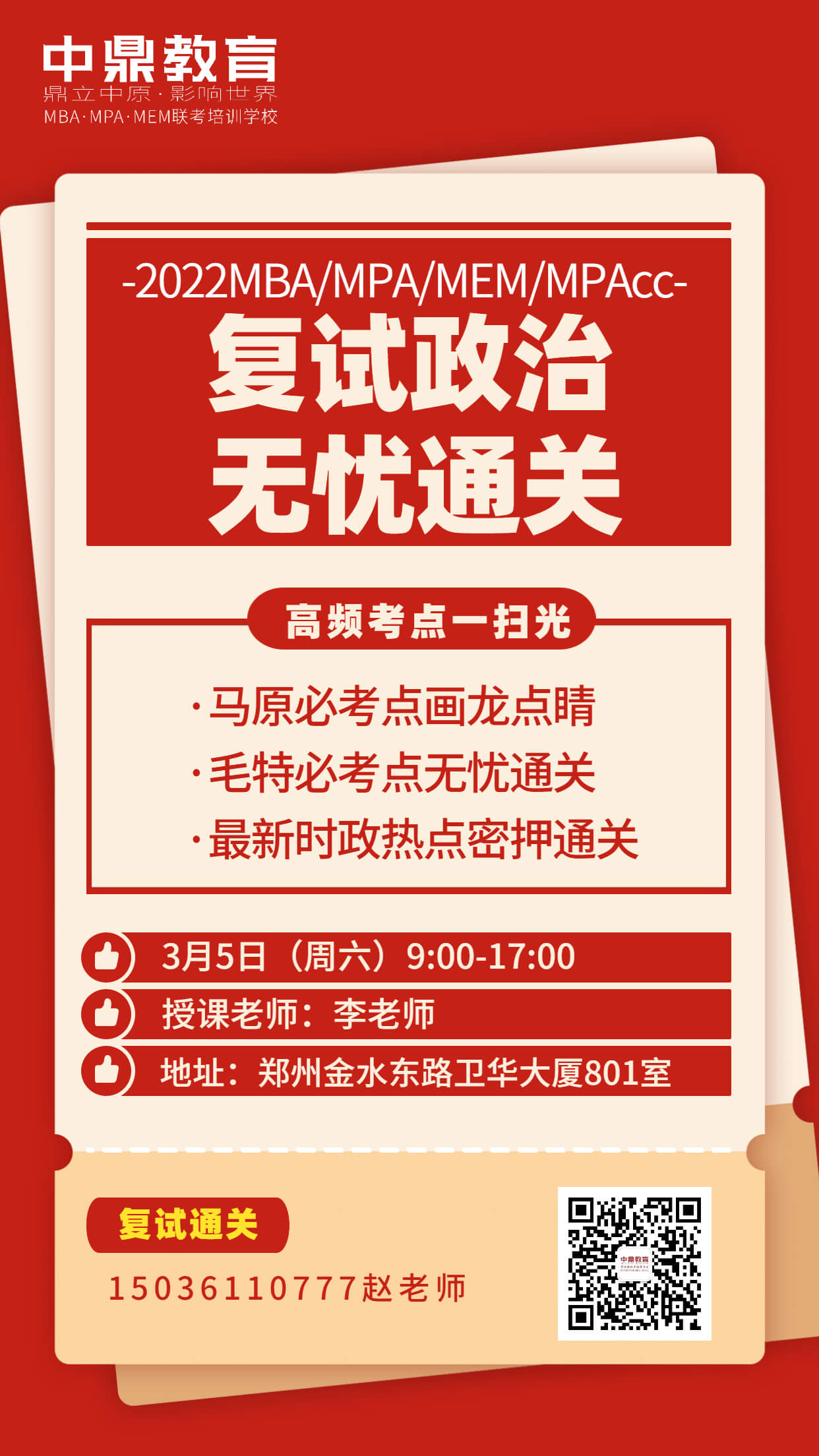 天将降大任于斯人也,必先苦其筋骨,劳其心智。追求优秀,理所当然要付出艰辛、经历困顿。MBA等管理类专业硕士研究生考试,你已经披荆斩棘拼到了复试的入口,遥望研究生院生活就在眼前,只要把这关逛过去,你就进入知识殿堂了,更广阔的平台在等你,MBA